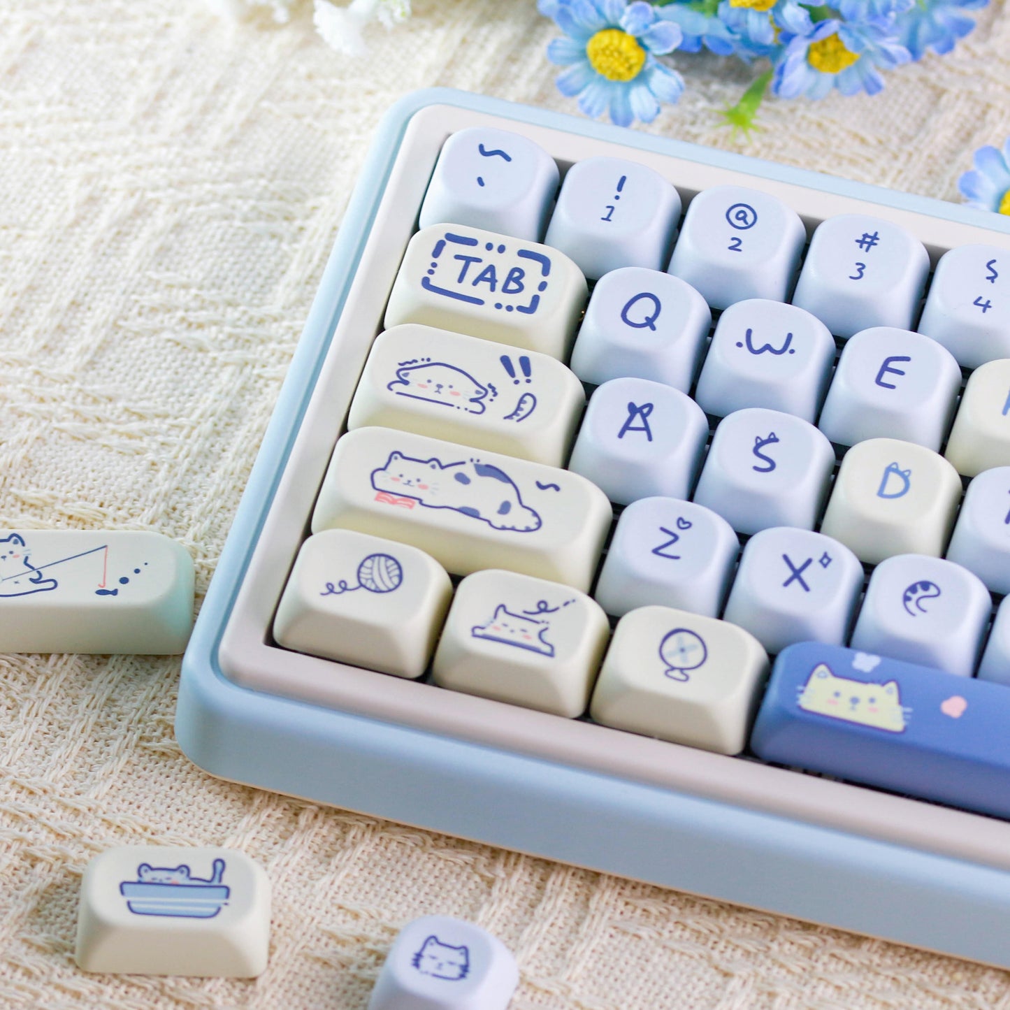 Introducing the Lazy Cat Keycap Set - for when you want to add a cute touch to your keyboard! With a playful blue design, these keycaps are both stylish and functional. Say goodbye to dull keys and hello to a purr-fect typing experience. (Meow-some addition to any keyboard!)